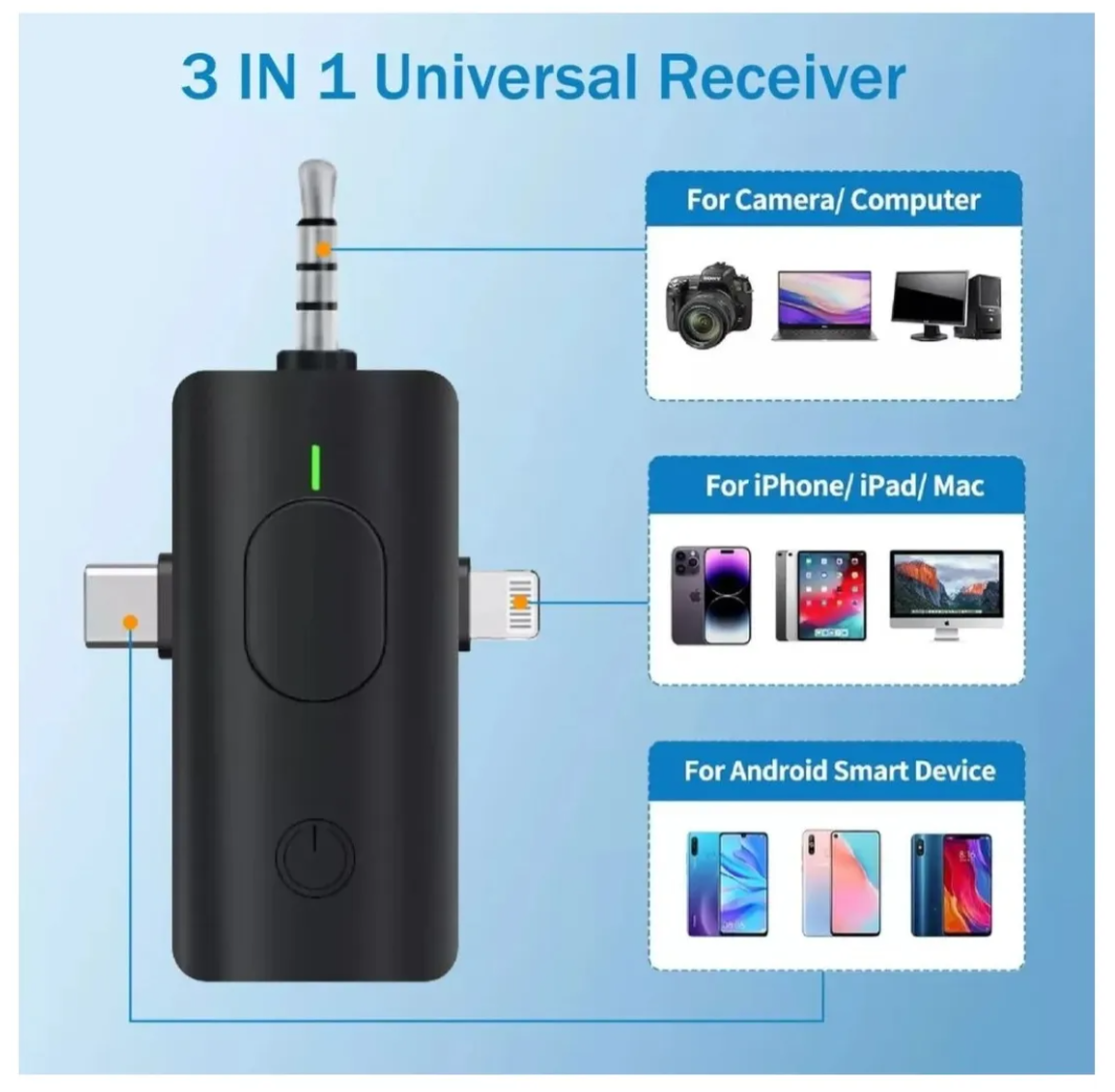 ¡Simplemente conecta y graba! Compatible con smartphones (iPhone y Android), cámaras réflex, laptops y PCs. No requiere aplicaciones ni configuraciones complicadas. Este es el aliado perfecto para quienes buscan practicidad, portabilidad y resultados profesionales.